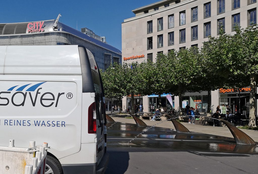 Durch die greensafer®-Technologie wird das Brunnenwasser auf Trinkwasserqualität keimfrei gehalten und rutschige Bioablagerungen auf dem Boden gehören der Vergangenheit an.